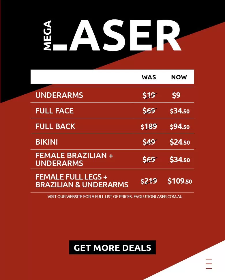 | Female Full Legs + Brazilian & Underarms | $109.5 | |